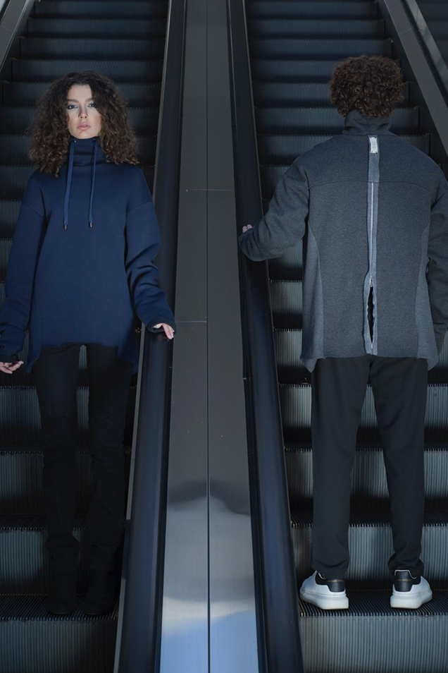 Each cut, each seam, is intentional in its rawness. The silhouettes move between sharp structure and fluid form, echoing the rhythm of unfinished spaces and the untold stories of the city.