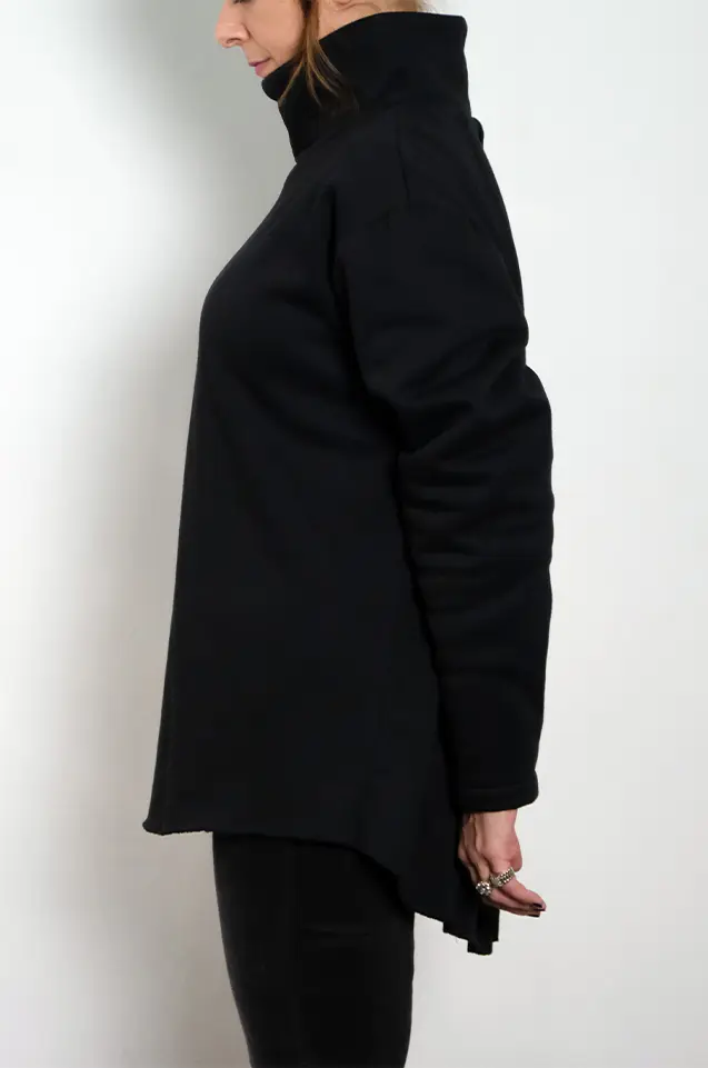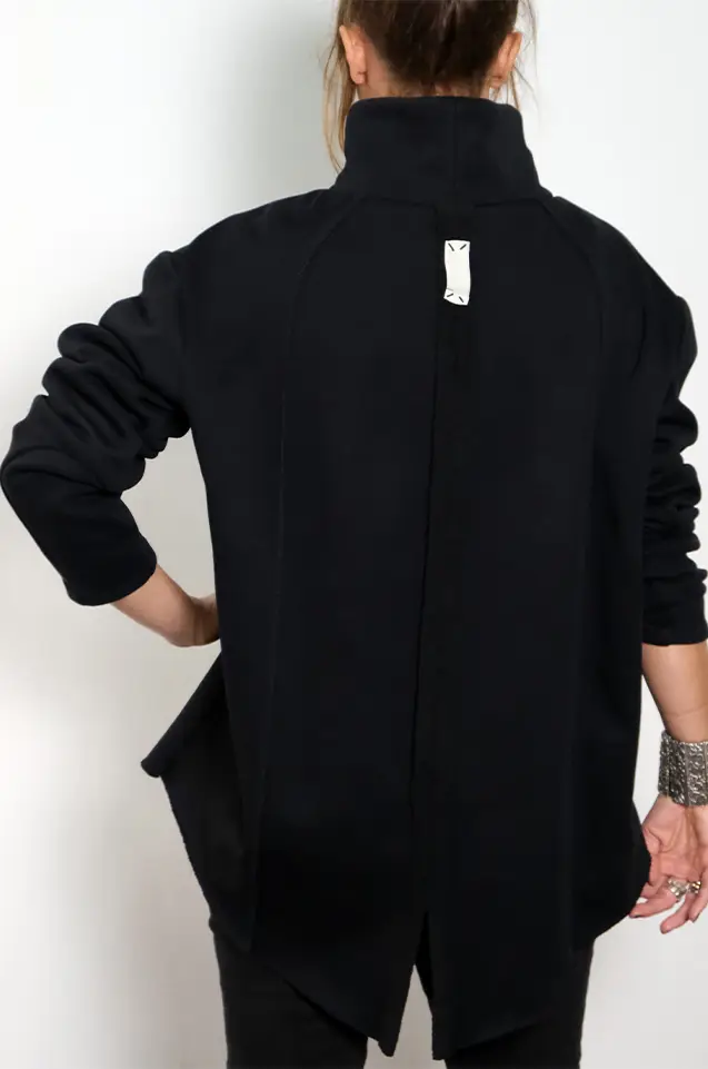A soft, structured turtleneck blouse that embodies quiet precision. Designed with clean lines and a smooth, uninterrupted surface, this piece reimagines geometry through simplicity. The elongated sleeves and gently curved hem create a balanced, architectural silhouette, while a discreet back panel with a subtle slit offers ease and movement. Minimal yet sculptural, itβs an effortless everyday layer that showcases the elegance of pure form.
