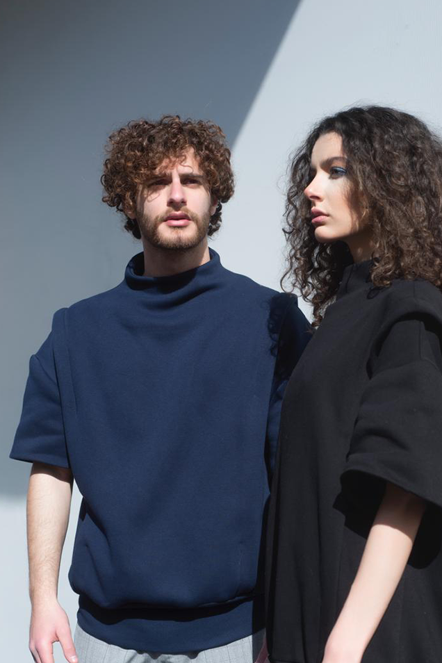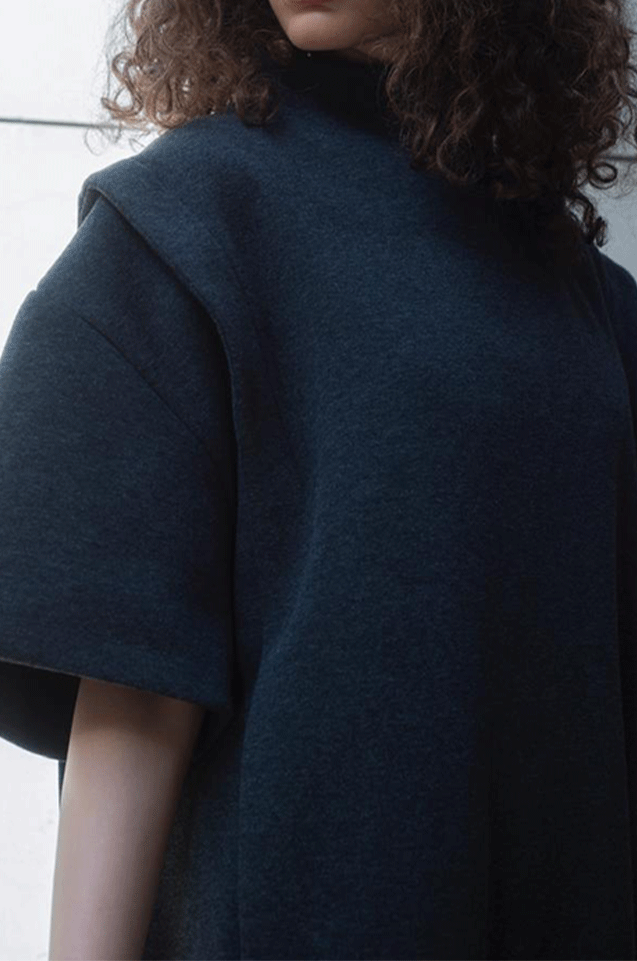 Couture ouverte design with raw round finishing, high neck, and ribbed details